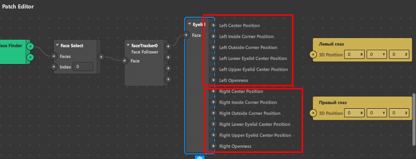 Теперь от Face Tracker тянем вправо стрелочку, появляется новое окошко с поиском. В окошке поиска введите слово Eyelid.