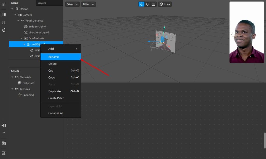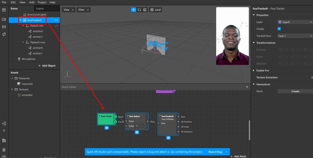 В нижней части экрана появится новый объект. А теперь опустите нижнюю рабочую область чуть ниже и перетяните в нее наш Face Tracker, как показано на скриншоте.
