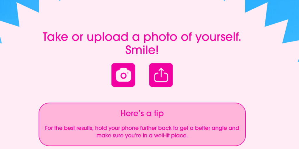 - Choose the photo you wish to transform into a Barbie-like masterpiece and upload it