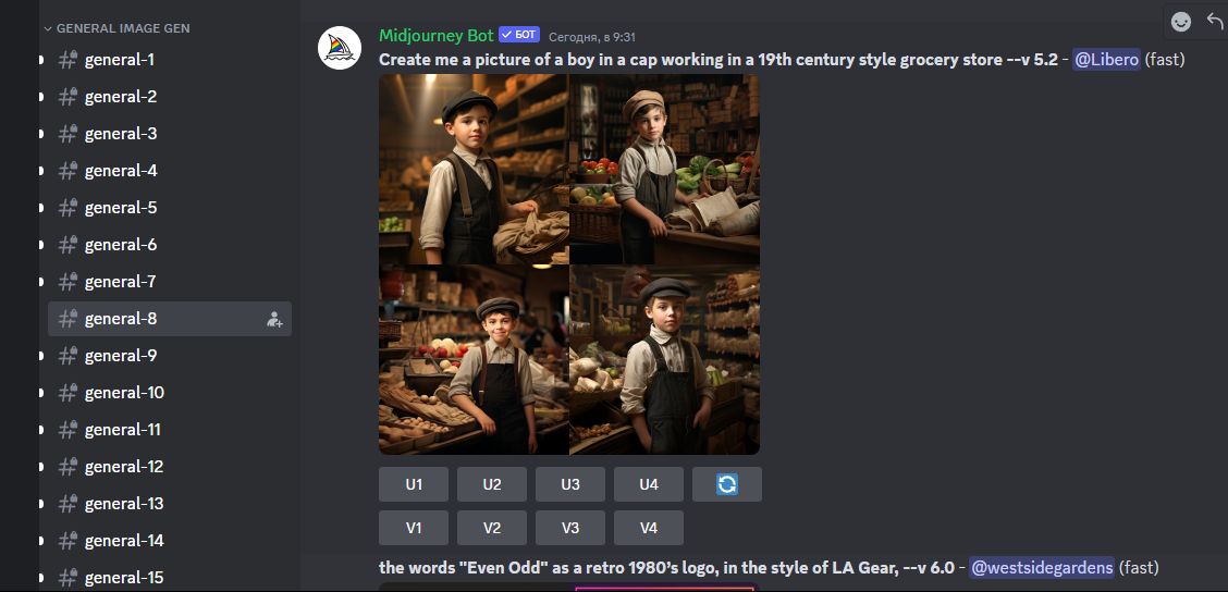 одно и то же Prompt-описание, миджорни бот будет каждый раз выдавать совершенно разные