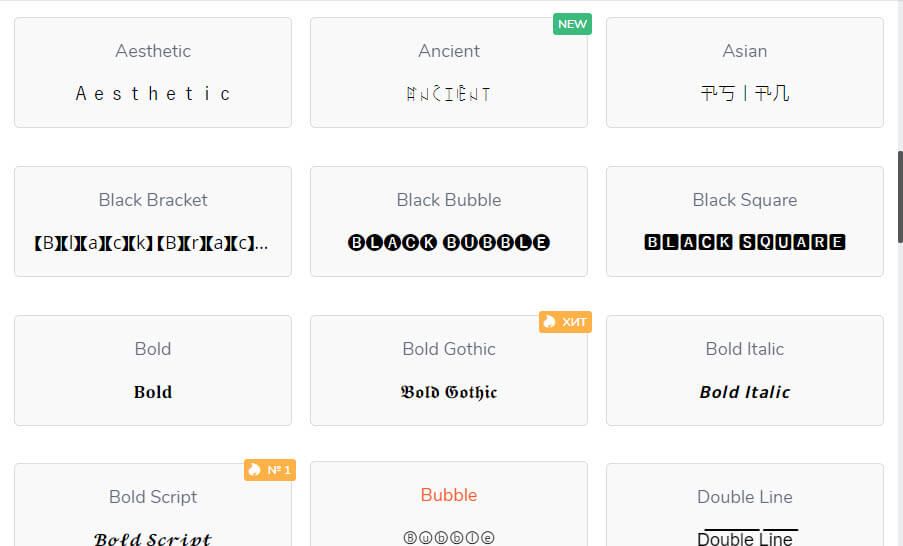 Платформа TextGeneration – удобный сайт, позволяющий подобрать оптимальный шрифт и уже сразу изменить привычный текст. Попав на главную страницу сервиса, мы видим огромное количество различных шрифтов, некоторые из которых действительно весьма странные.
