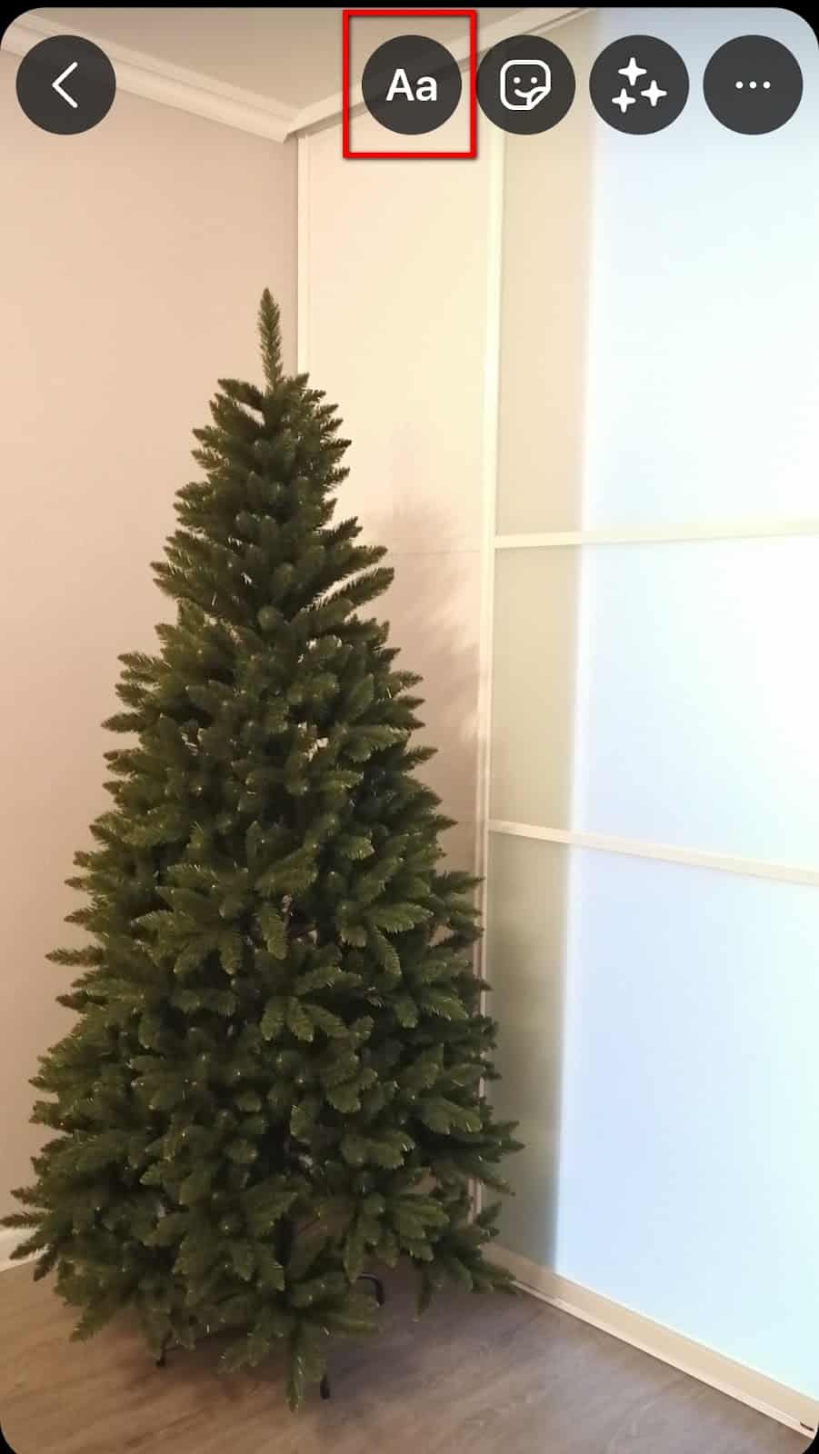 Далее, сделайте фото или видео, которое будет использовано в вашей истории, и нажмите на кнопку «Текст» в верхнем меню.