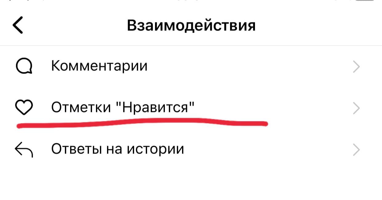 - Выберите опцию “Взаимодействие”, затем нажмите на “Лайки”.