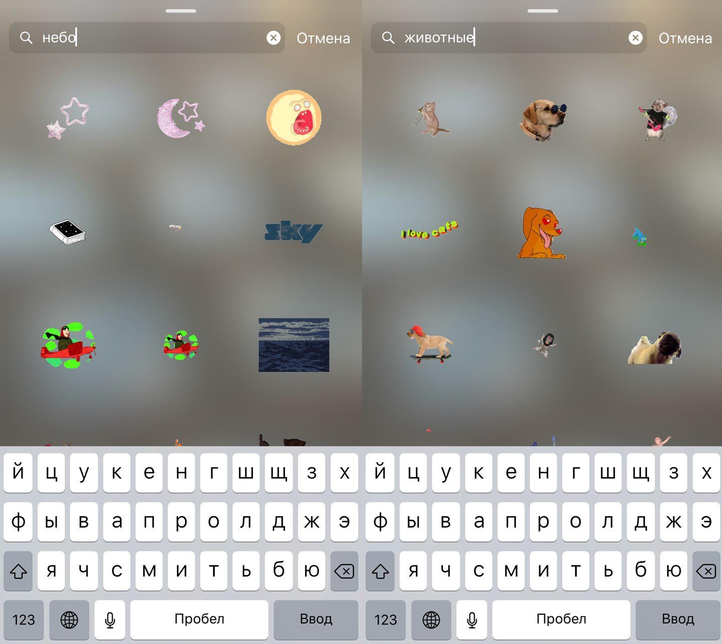 По сути, социальная сеть просто подключила к себе базу данных анимаций, которая называется GIPHY. Она просто невероятно большая и можно найти абсолютно всё что угодно.