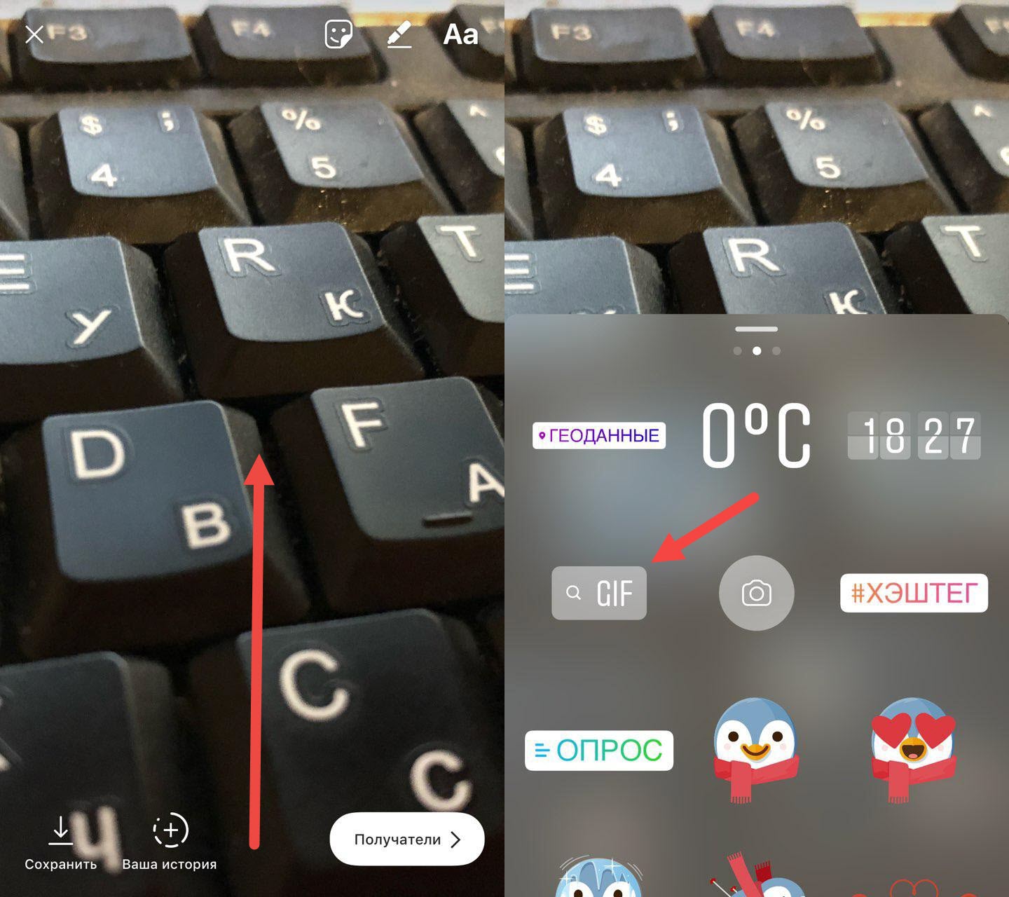3. Выберите любую понравившуюся гифку и поместите ее в нужную часть stories.