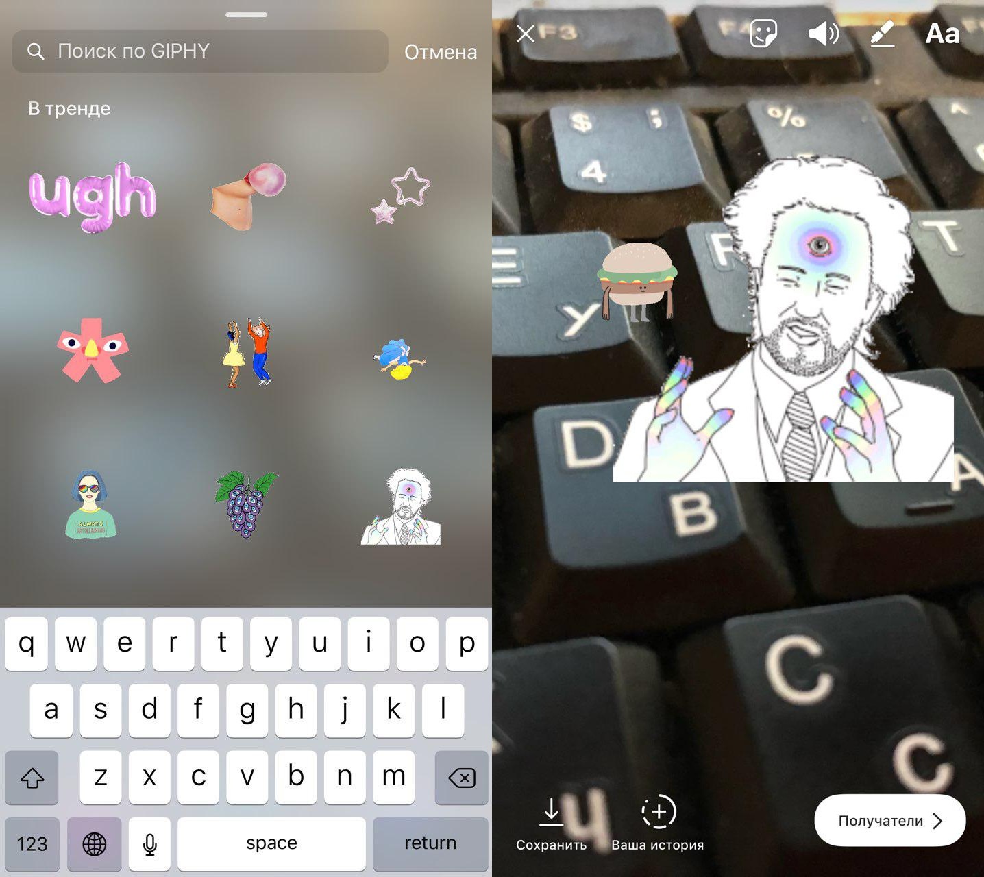 Интересный факт! Отдельный сервис Giphy сотрудничает с социальной сетью, поставляя новые анимации. Стикеры, похожие на меня, в Инстаграме добавляются и создаются также при помощи данного сервиса.