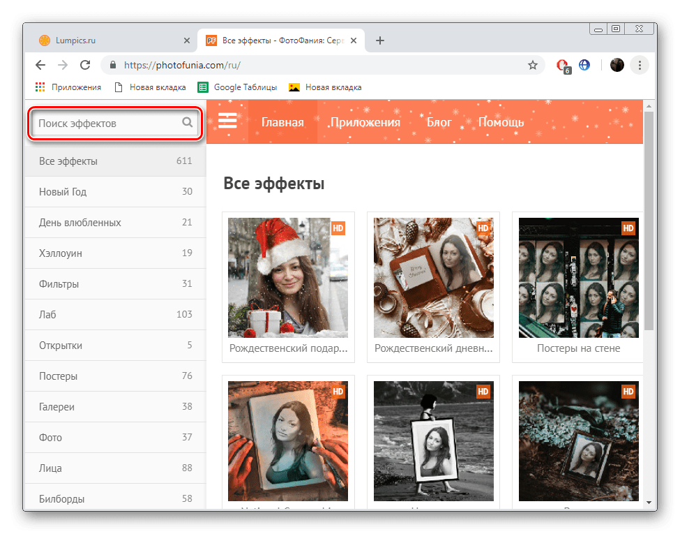 Сайт ФотоФания собрал в себе более шестисот различных эффектов и фильтров, среди которых находится и рассматриваемый нами. Его применение осуществляется буквально в несколько кликов, а вся процедура выглядит так: