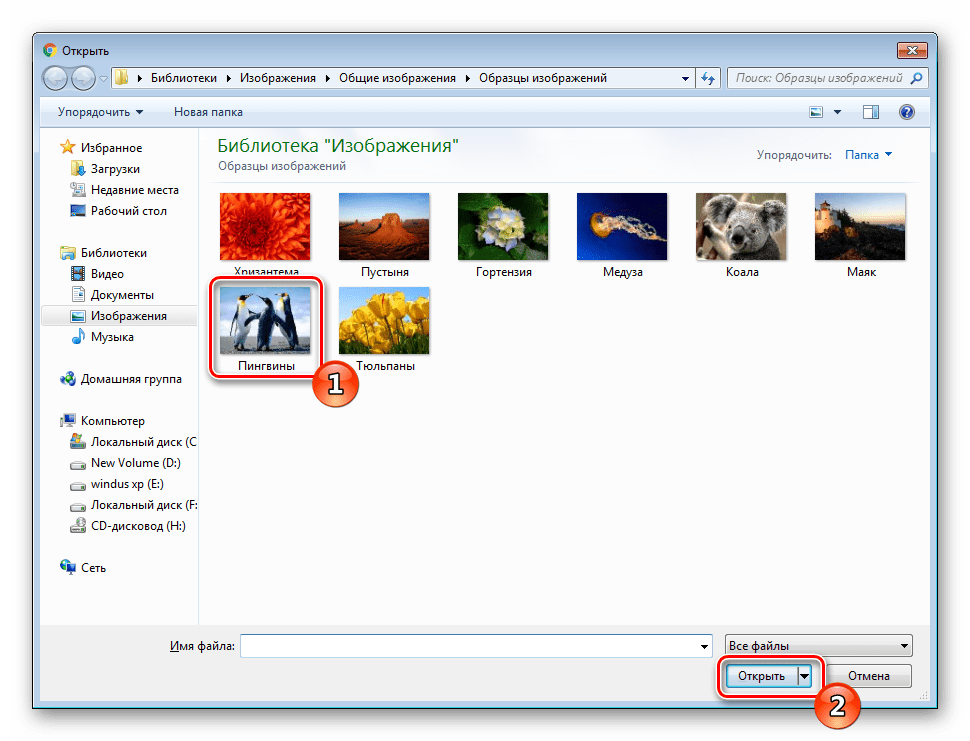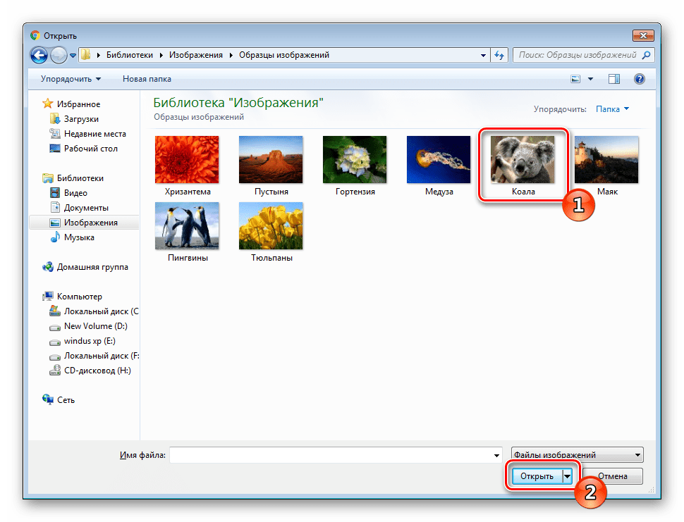 В запустившемся обозревателе выделите левой кнопкой мыши фотографию, а затем щелкните на «Открыть»