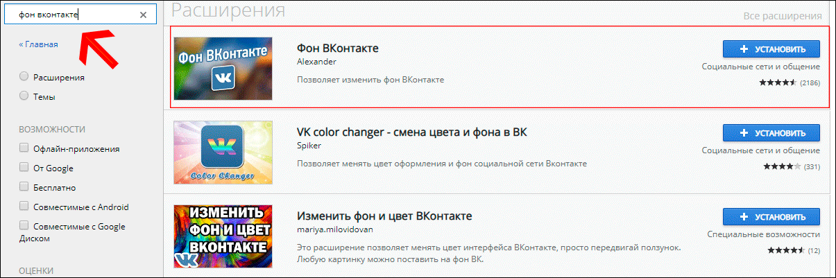 Изменение фона с помощью дополнительных расширений