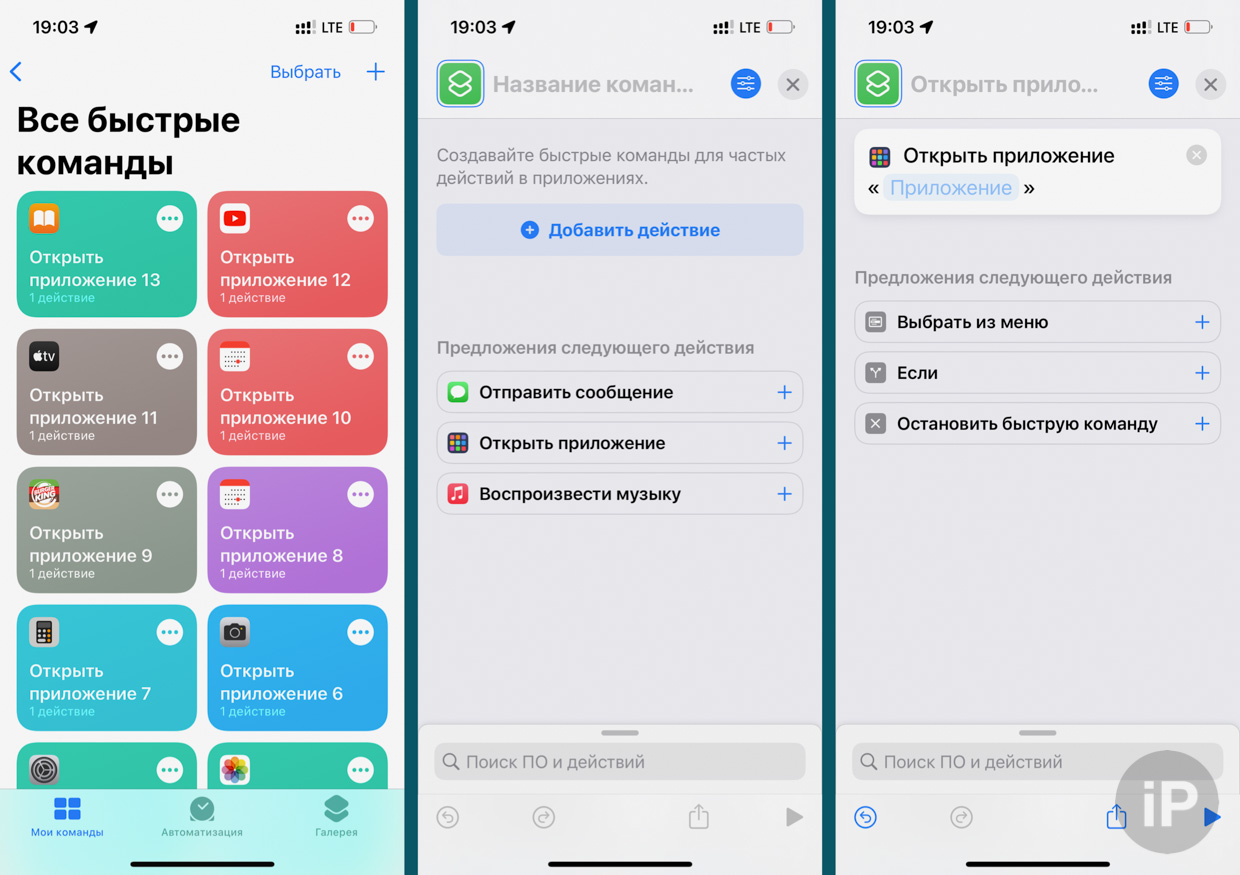 После завершения установки выйдите из App Store и запустите приложение «Ярлыки» с главного экрана вашего устройства iOS. На странице «Все ярлыки» нажмите кнопку «+» в левом верхнем углу экрана. Нажмите «Открыть приложение» и выберите «Приложение». Прокрутите вниз и выберите «Инстаграм».