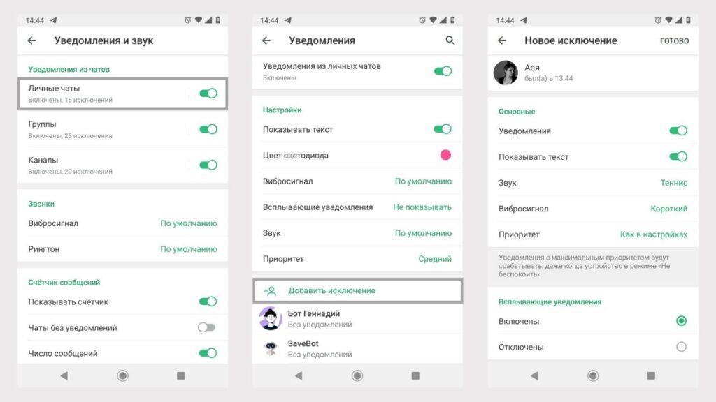 - Ввести @username бота Телеграм и выбрать его в списке.