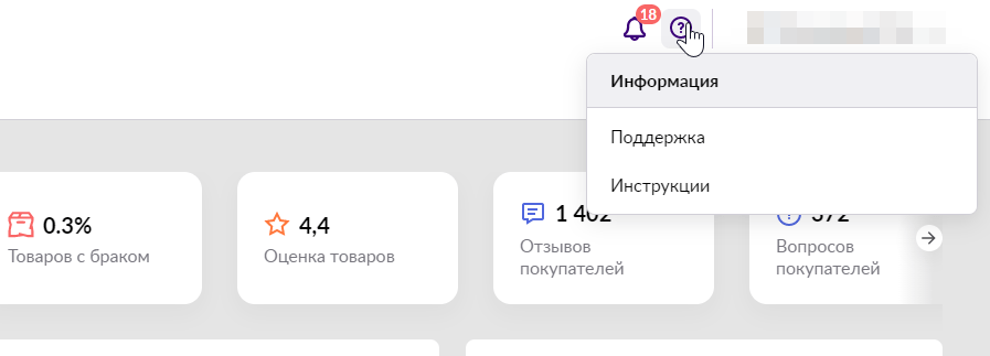 Service Desk — это система тикетов от вайлдберриз. Попасть в раздел новом личном кабинете можно так. В верхнем правом углу находим иконку вопросика и выбираем пункт “Поддержка”.