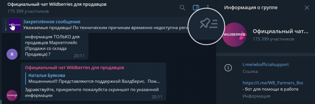 1. Официальный чат Wildberries в телеграме: https://t.me/wbofficialchat.