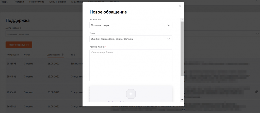1. Внутренний сервис «Поддержка». Это главный канал, где работает техническая поддержка на Wildberries для селлеров.
