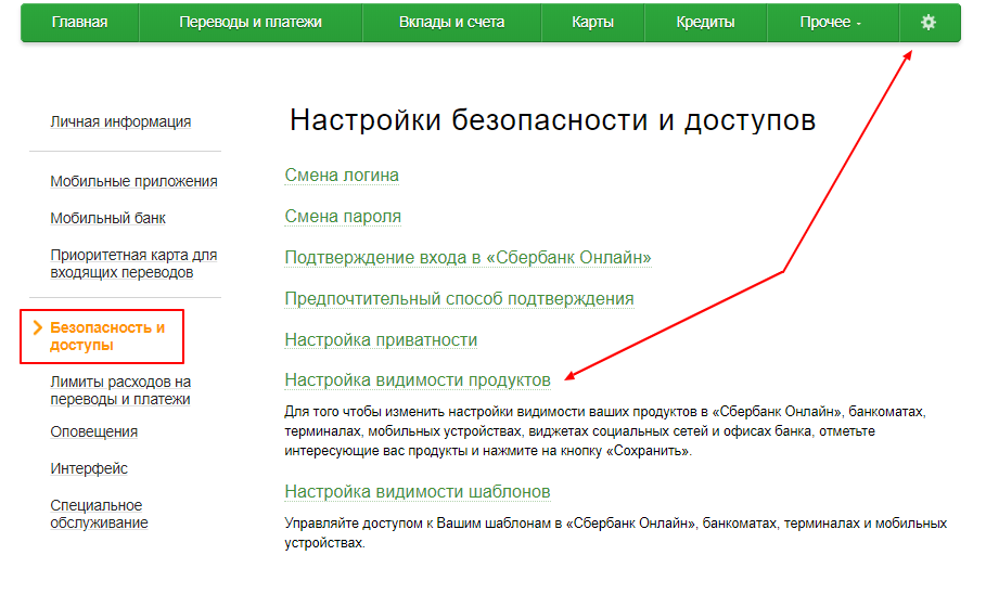 Как скрыть карту в Сбербанк на официальном сайте? Для этого в первую очередь нужно перейти в личный кабинет и войти в учетную запись под своими данными. После авторизации нужно нажать «Настройки» в меню или нажав на иконку «Шестеренки». После этого необходимо: