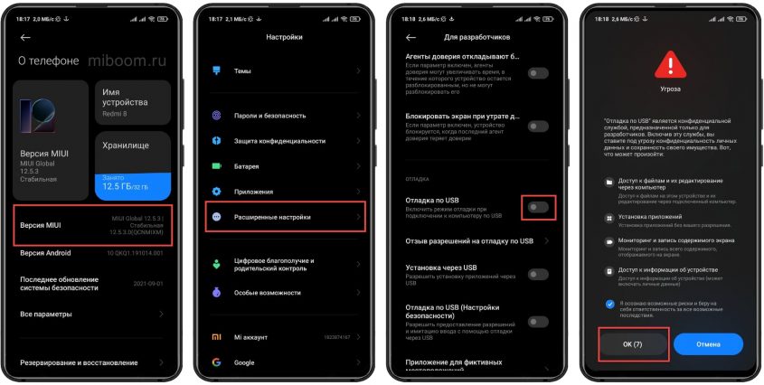 Процедура будет происходить в два этапа: включение отладки по USB в смартфоне и работа с командной строкой и ADB.