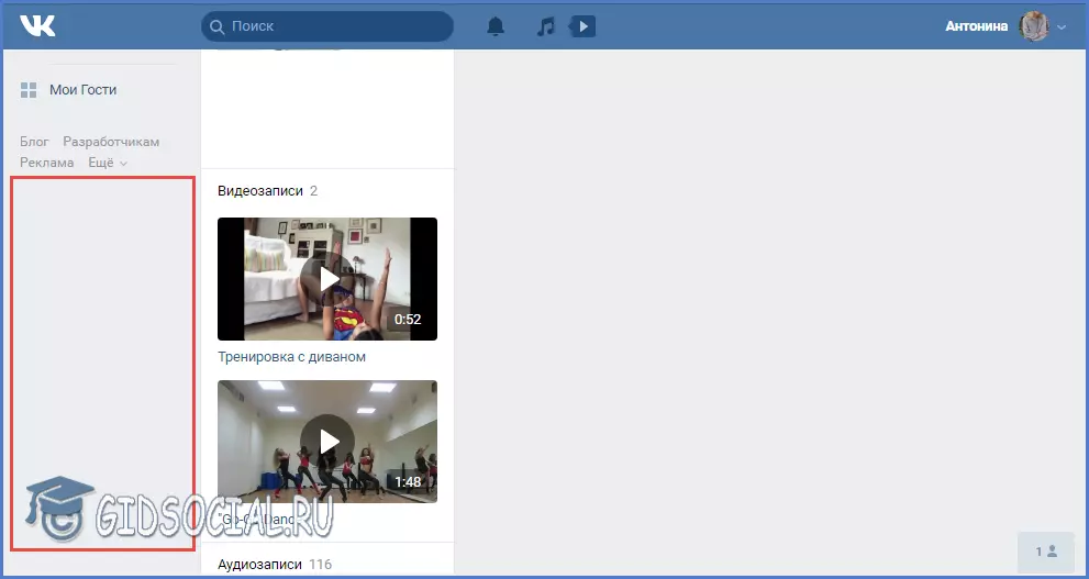 - Чтобы проверить, сработал ли указанный способ блокировки, можно вернуться к своему профилю ВК и посмотреть на область страницы, где раньше располагались рекламные блоки. Она теперь будет пуста.