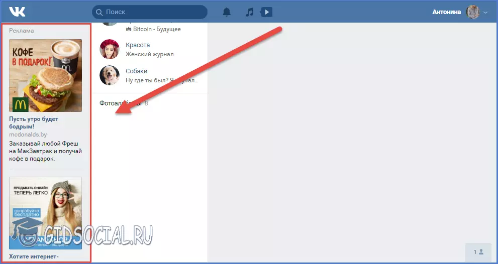 Стоит отметить, что разработчики социальной сети «Вконтакте» специально постарались сделать всё так, чтобы реклама никому не мешала. Более того, они учитывают ваши предпочтения, и реклама касается исключительно ваших увлечений. Допустим, если вы большой любитель рисования, то в левой части экрана будут появляться группы и сообщества, тематика, которых направлена в данное русло.
