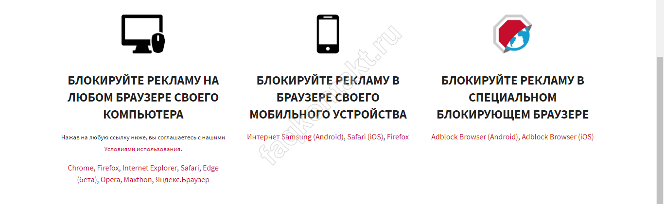 - блокирует всю рекламу (баннеры, видео, текстовую рекламу);
