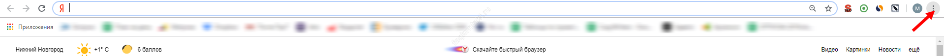 - Чтобы их скрыть, необходимо перейти к настройкам Для этого нужно кликнуть по значку расширения, который находится слева от адресной строки браузера.