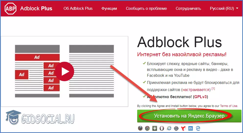 Adblock будет установлен на ваше устройство и интегрирован в браузер, после чего сможет убрать рекламные объявления.