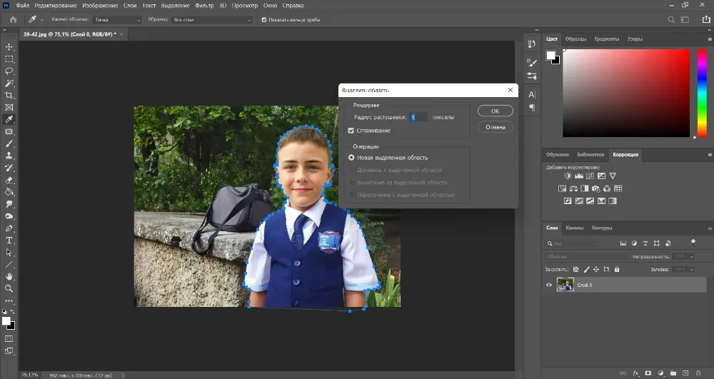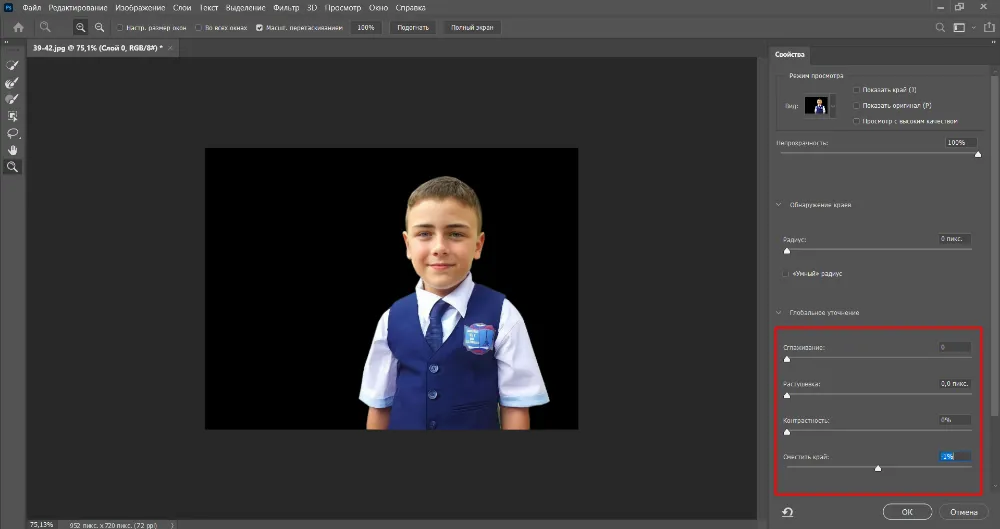 Уточните края при помощи опции «Выделение и маска».