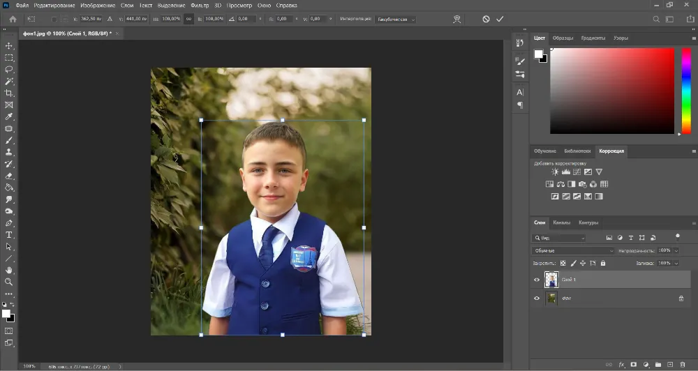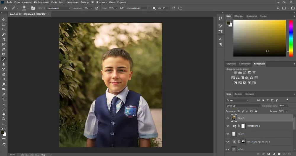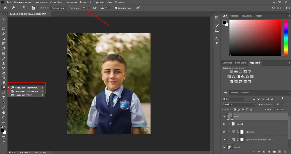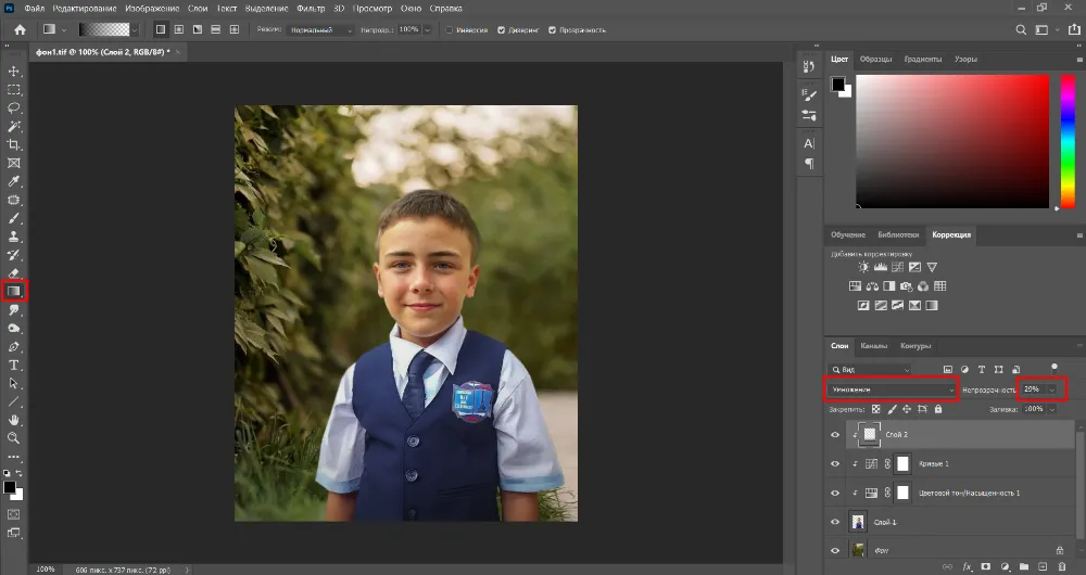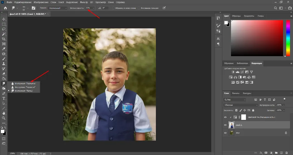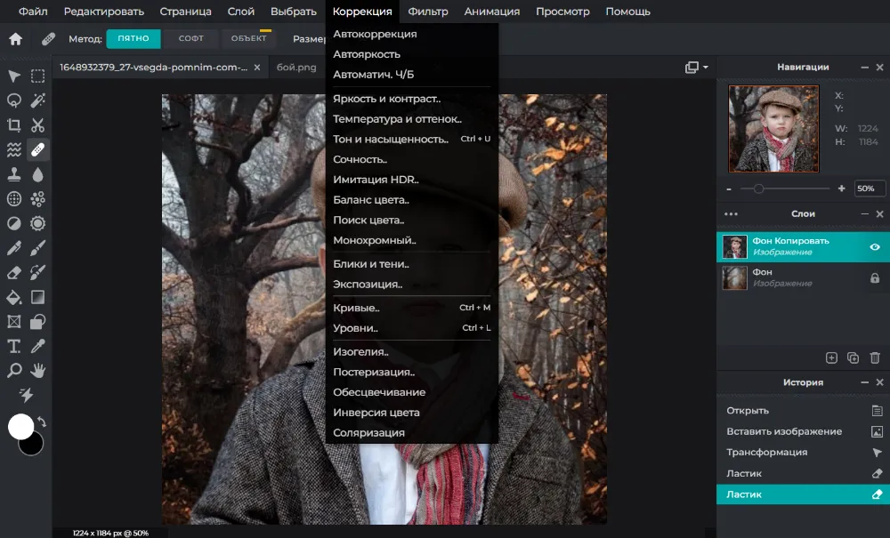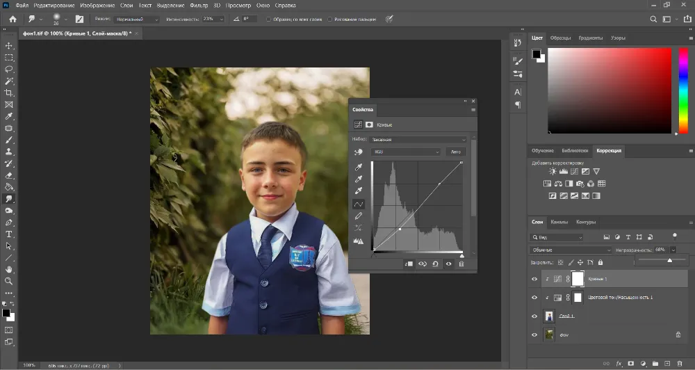 Теперь, чтобы модель сливалась с фоном, отредактируйте ее, воспользовавшись инструментами из раздела «Коррекция».