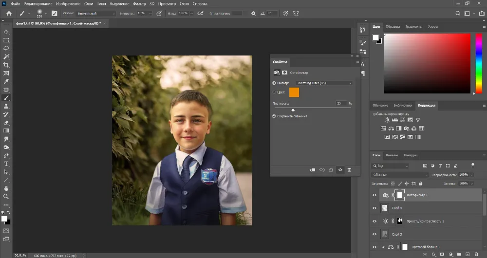 Для финальной цветокоррекции используйте теплый фильтр, первый в списке.