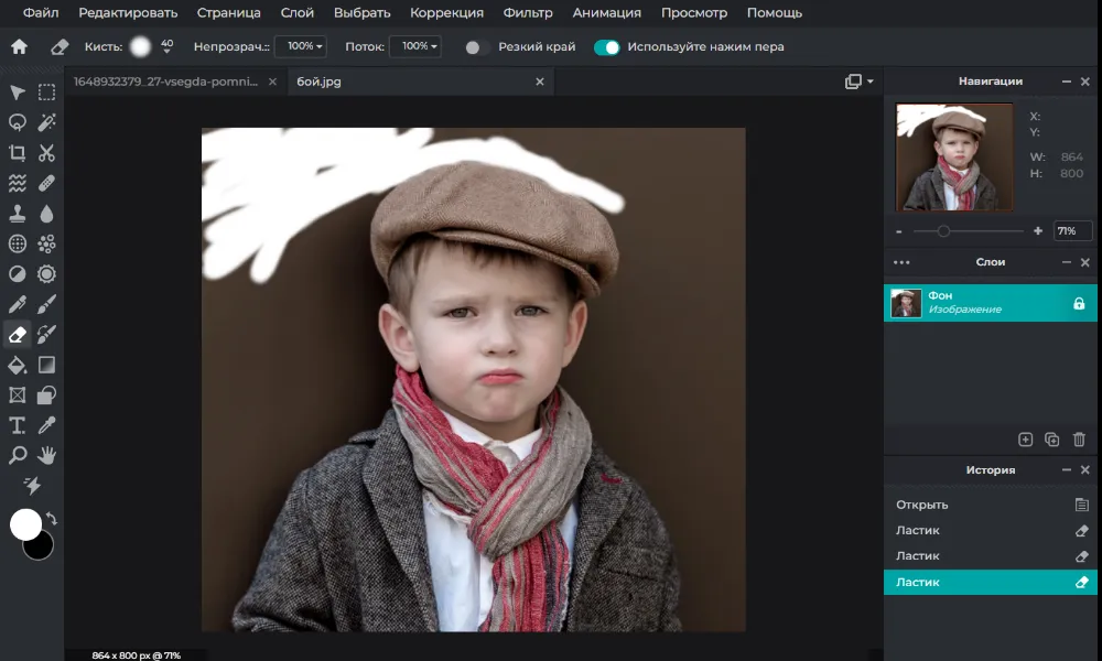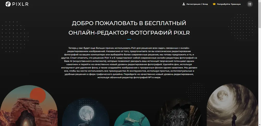 Бесплатный онлайн-редактор, который имеет две сборки Pixlr X и Pixlr E: одна попроще, вторая посложнее. Удаление заднего плана возможно в обоих. Мы будем работать со второй. Запустите редактор.