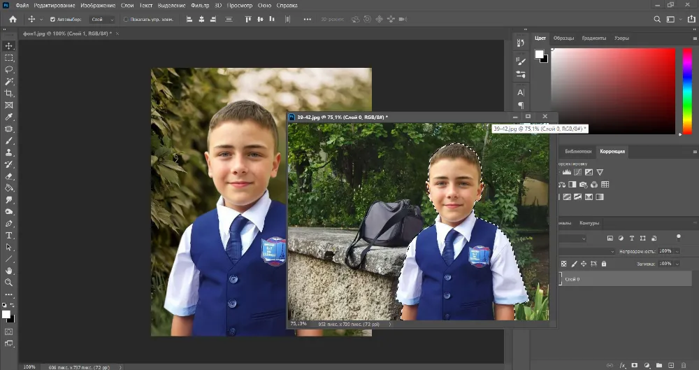 Откройте сразу две картинки: фон и ту, с которой планируется пересадить объект.