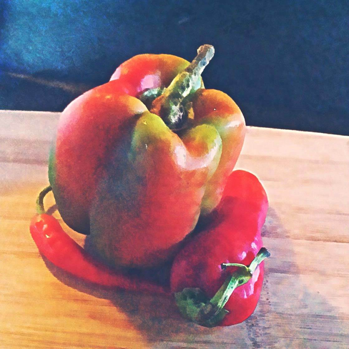 В Mextures я использовал фильтр Decay. В Vintique я выбрал Russet (из базовых фильтров), чтобы подчеркнуть красный цвет перца. Наконец, я увеличил контраст в BeFunky, но не использовал виньетку.