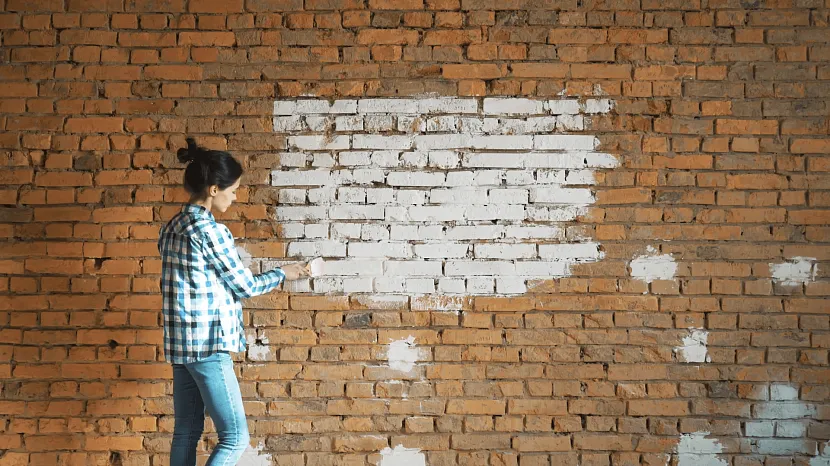 Окрашивание белой красой прежде состаренной кирпичной стенкиИсточник storyblocks.com