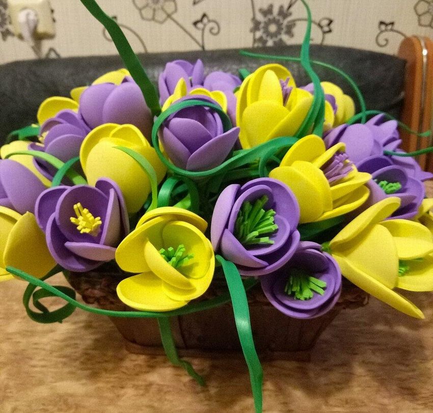 Весенний букет крокусов из фоамирана.