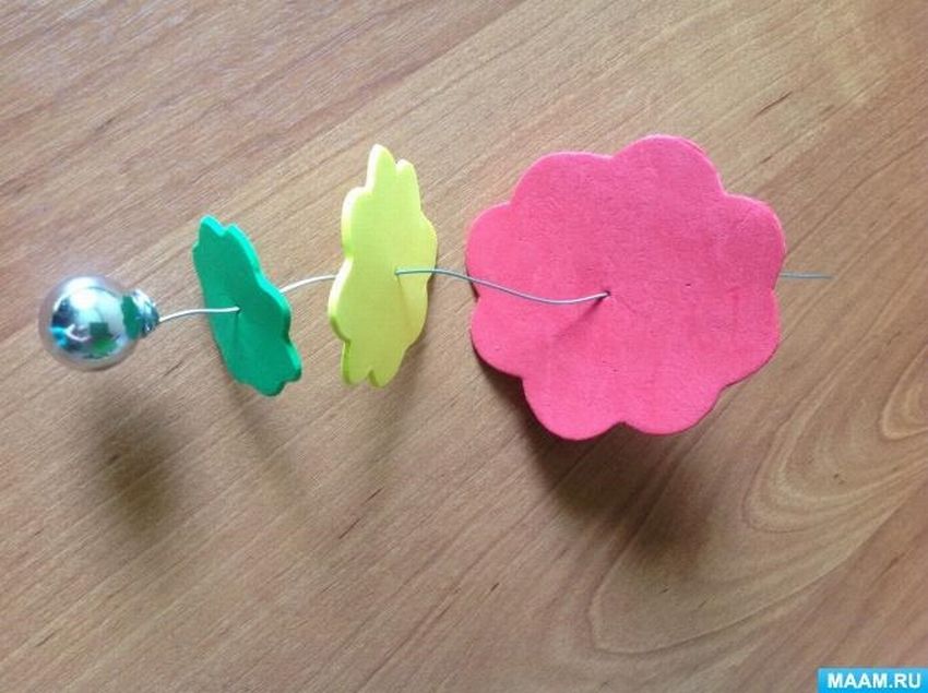 И под цветок клеим зелененький уплотнитель.