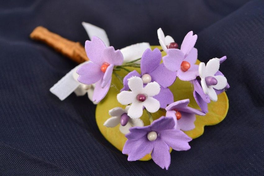 Нежнейшие цветочки из фоамирана с бусинками: свадебная бутоньерка.