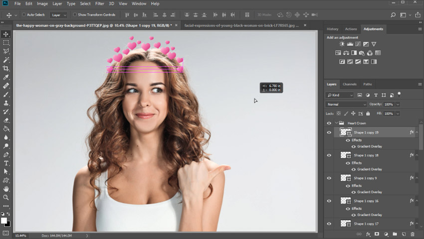 Чтобы более тонко настроить положение сердец, используем инструмент Move Tool