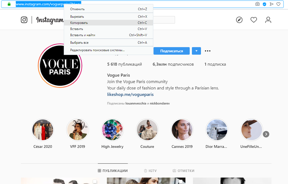 Как скопировать ссылку на профиль или фото через компьютер?