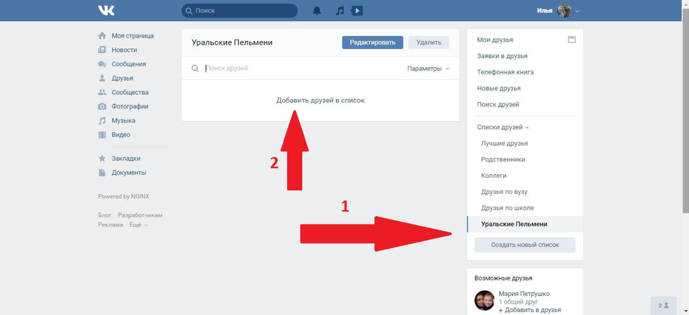 Дополнительные возможности настройки списка друзей ВКонтакте