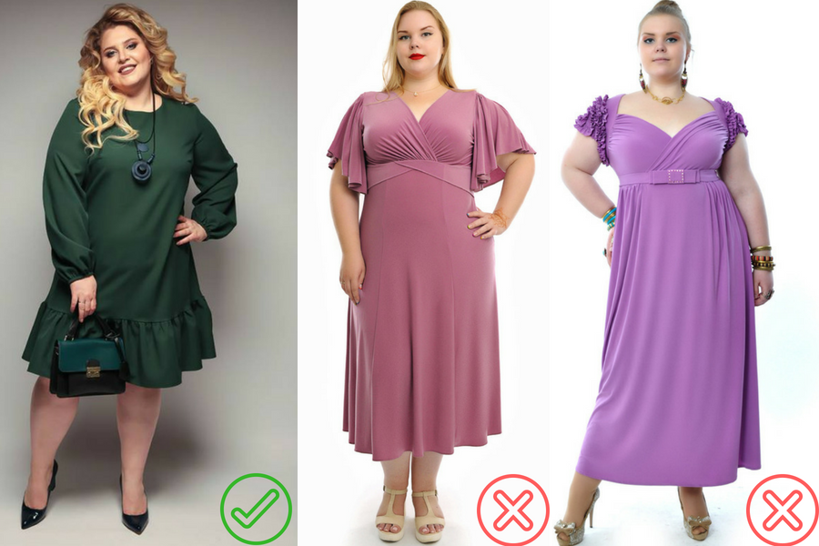 Поэтому выбирайте модели блузок и платьев с узкой талией. В то же время абсолютно противопоказаны платья с завышенной линией талии — они делают акцент на массивном верхе
