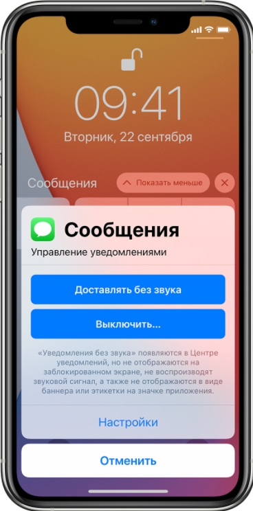 Здесь можно выбрать полное выключение, либо активировать функцию «Доставлять без звука».