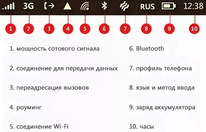 Строка состояния – это часть общего интерфейса, расположенная в верхней части экрана. Но дело в том, что везде, кроме этой верхней строки, значки подписаны и обозначены. В строке состояния они настолько маленькие, что просто нет возможности добавить еще какие-то обозначения к ним.