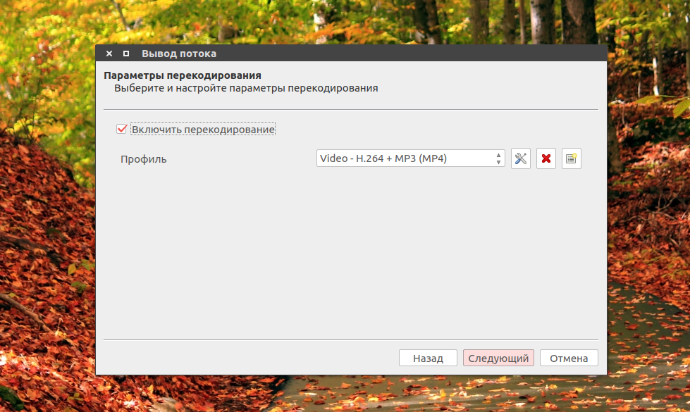 , в строчке профиль выберите Video — H.264 +MP3 (MP4)