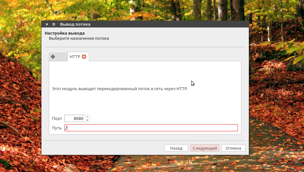 Затем выберите порт и url по которому будет открываться поток. Данные лучше оставить по умолчанию: