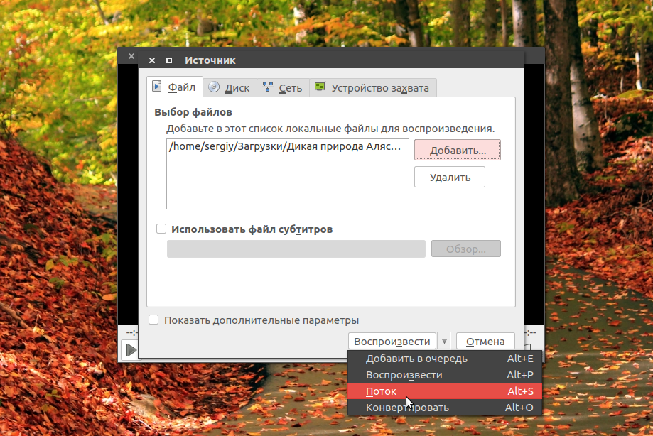 , и выберите файл, который вы собираетесь транслировать с помощью кнопки Добавить