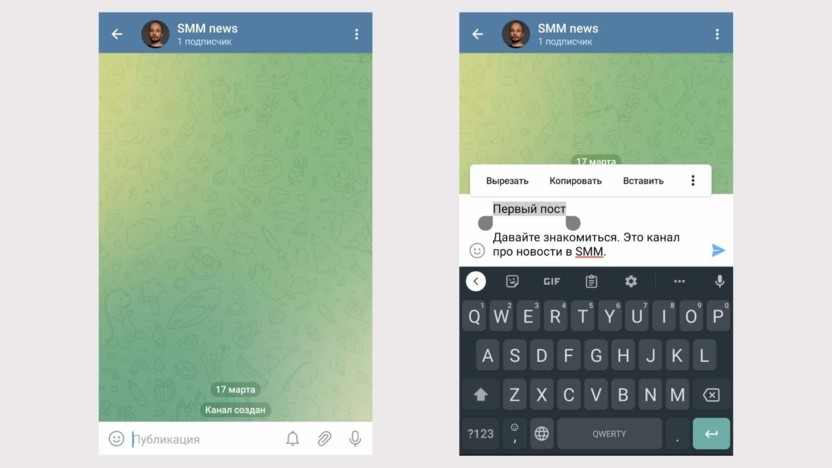 - Перед публичным объявлением канала напишите 3-5 сообщений с картинками / ссылками, чтобы ваш канал не выглядел пустым. Никто не подписывается на пустой канал.