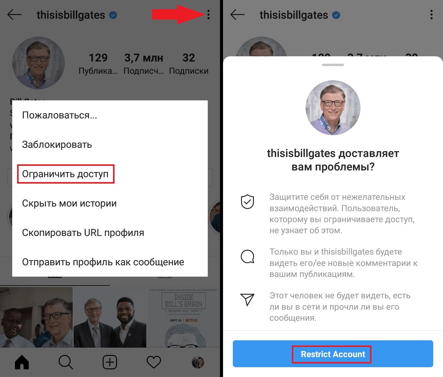 Как ограничить доступ через настройки в приложении Инстаграма*Как найти профиль для установления ограничений