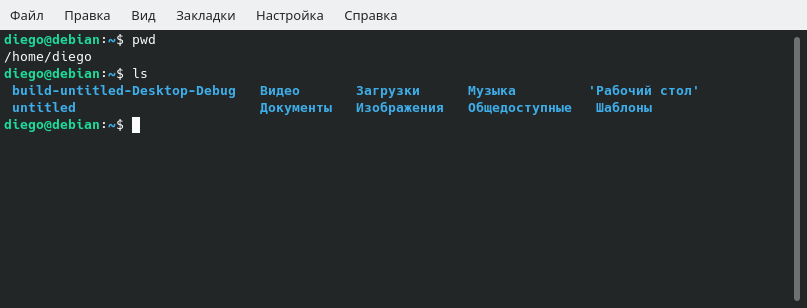 Команда pwd (сокр. от print working directory») — указывает на текущий рабочий каталог, в котором команды шелла будут искать файлы.