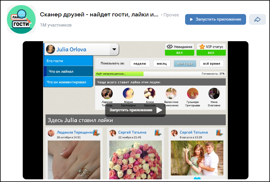 Приложения мониторинга не взламывают личные пароли и не загружают приватный контент из профилей. Часто они даже не могут преодолеть настройки конфиденциальности. Они просто анализируют деятельность человека на сайте «ВКонтакте». Действия, которые также можно отслеживать вручную, поскольку их следы находятся в свободном доступе. Однако делать это вручную очень трудоемко, поэтому пользователи прибегают к помощи интеллектуальных утилит.