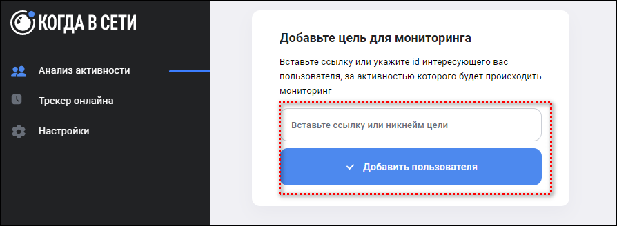 После того как будет пройдена регистрация, можно войти в сервис. В «Когдавсети» пользователь найдет вкладку «Анализ активности». Здесь он должен прописать ID человека ВКонтакте, за которым будет вестись слежка.