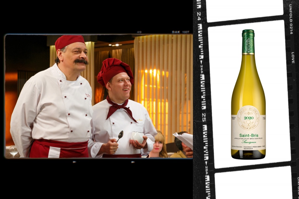 Кадр из сериала «Кухня»; вино Jean-Marc Brocard (Domaine Sainte-Claire) Sauvignon Saint-Bris